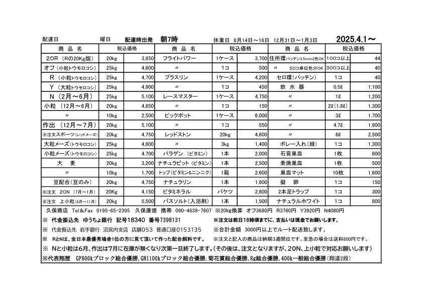 2025年4月1日~価格表ダウンロード(PDF:351KB)